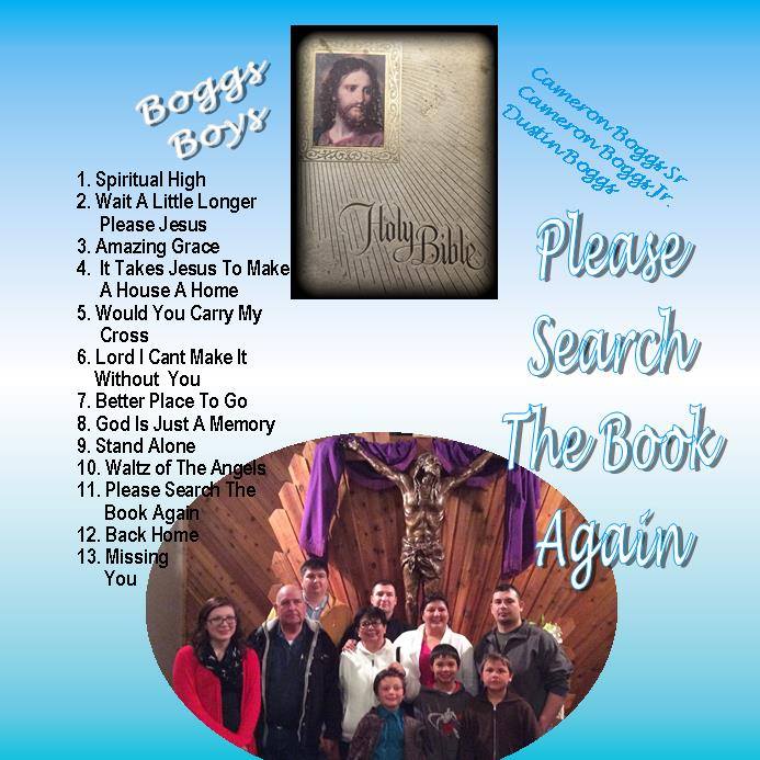 Please Search The Book Again – Cameron Boggs Jr Back Home Again – Dustin Boggs Lord I can’t Make It Without You – Cameron Boggs Sr Spiritual High – Cameron Boggs Jr God Is Just A Memory – Dustin Boggs Waltz Of The Angels – Dustin Boggs Amazing Grace – Cameron Boggs Jr Wait A Little Longer Please Jesus – Dustin Boggs It Takes Jesus To Make A House a Home – Dustin Boggs Would You Carry My Cross – Cameron Boggs Jr Better Place To Go – Cameron Boggs Jr Stand Alone – Cameron Boggs Jr Missing You – Cameron Boggs Jr